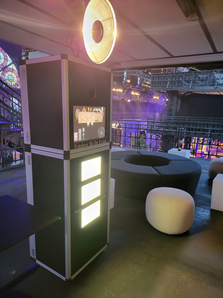 • Fotobox LED-Tower – Standfläche 1x1m – Optimaler Platzbedarf sind 2x2m.